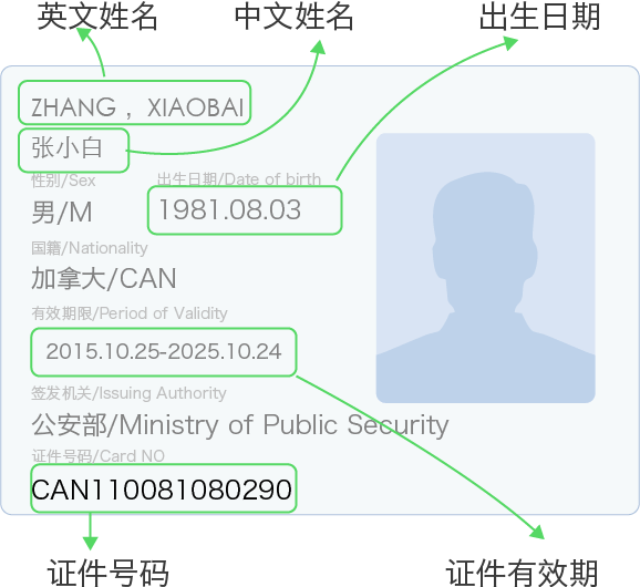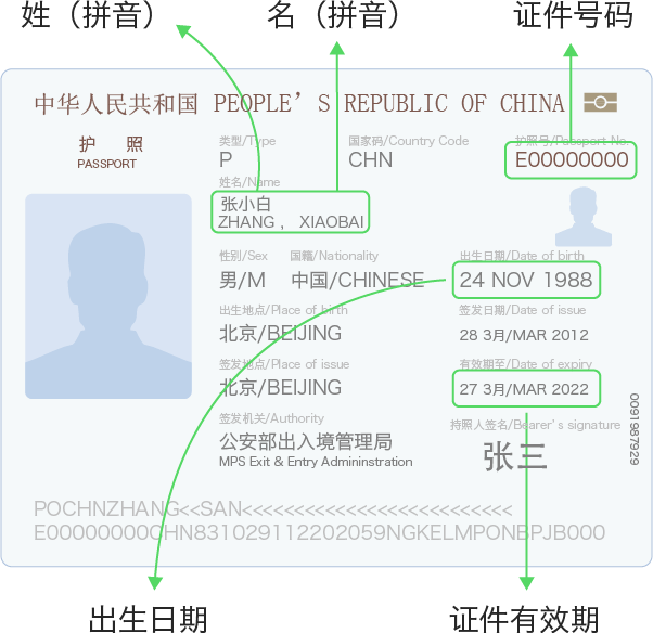 姓与名总长度小于等于26个字符,若过长请使用缩写。如Anastasia Elizabeth Luisanna Rodriguez缩写为:
