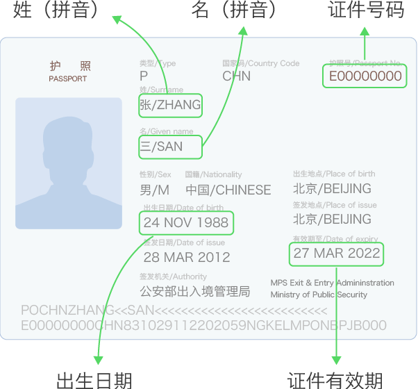 ◎ 乘机人姓和名请务必按照登机证件上拼音或英文名填写